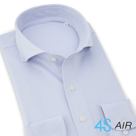 驚きの軽さと風通しの良さが特徴の『4S AIR』シャツ。高いストレッチ性と吸汗速乾で快適な着心地。爽やかなサックスが清涼感を演出する夏向けメンズシャツ。