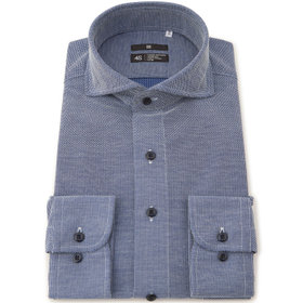 【BLACK LINE】ホリゾンタルワイドワイシャツ/ブルー×ドビー/「4S」スーパーノンアイロン・ストレッチ