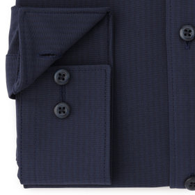 SKINNY(スキニー)シャツは、衿型・カフス型・前立巾にもこだわりコンパクトにすることでより見た目のシャープ感を視覚的にも演出しました。また下前立てに芯地を入れる事により衿立ちをキレイに見せる仕様もポイントです。