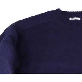 定番のクルーネックはウール100%のシャギードッグニット素材。ふさふさした手触り感でレイヤードスタイルに上品さをプラス。