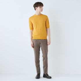 ・12Gのミドルゲージニットで1枚での着こなしはもちろんドレッシーなテーラードジャケットとの相性も抜群。