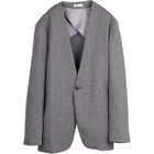 1釦ノーカラージャケットです。紡毛調のポリエステルを多色使いしたドライタッチでクリアな目風