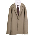 2釦オーバーサイズジャケットです。シームポケットを採用し、フロント周りをすっきり見せるデザイン。ダブルクロス素材の為、リラックスムードに適した上質な膨らみと柔らかさが特徴。