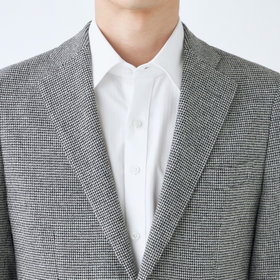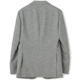 2釦シングルジャケットです。原料調達、反毛、紡績、織布、整理全ての工程を日本国内でおこない、尾州産地でつくられたリサイクルウールRE:NEWOOLを使用。