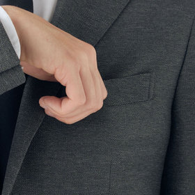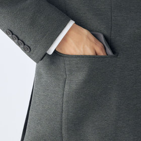 (1)肩パットを省いたアンコン仕立てで、軽くソフトな着心地。