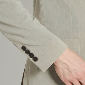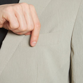 ジャケットは袖裏なしの軽快な仕立てで、清涼感のある着用感。