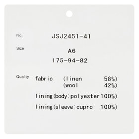 約10cmラペル・素材(表地)リネン58%/ウール42%/(裏地)ポリエステル100%(袖裏)キュプラ100%/サイドベンツ/【着用シーズン:春夏】