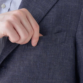 約10cmラペル・素材(表地)リネン57%/ウール43%/(裏地)ポリエステル100%/(袖裏)キュプラ100%・サイドベンツ・【着用シーズン:春夏物】