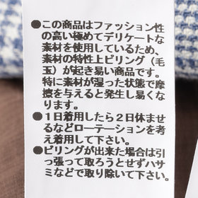 ※サイズスペック表の数値は平均値(目安)であり商品により誤差がございます。同じモデル(型番・型紙)でも同商品・同品番でない場合、サイズは異なります。数値だけではサイズが合わない場合がございます。実店舗での試着・購入をおすすめいたします。また、洗濯・乾燥機・クリーニング後は生地の伸び縮みによるサイズの変化がございます。
