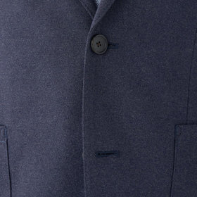 (1)肩パットを省いたアンコン仕立てで、軽くソフトな着心地。