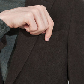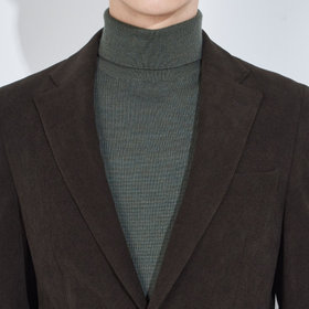 (1)肩パットを省いたアンコン仕立てで、軽くソフトな着心地。