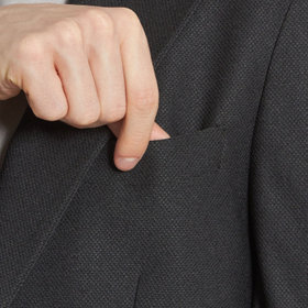 約8.0cmラペル・素材(表地)ポリエステル100%/(裏地)ポリエステル100%・フックベント・【着用シーズン:春夏物】