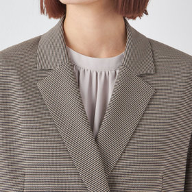 ノッチ襟の優しい雰囲気&フロントのスクエアカットのシャープさで甘辛MIX