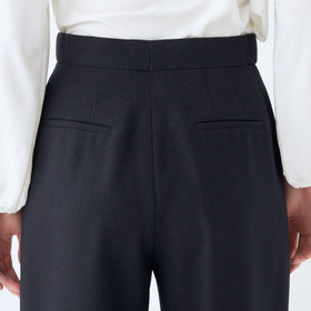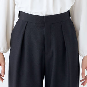 パンツは1タック・フルレングスのワイドストレートパンツでウエストムーブメント仕様(シャーリングのようなゴム感が外観には見えない仕様。片側3㎝・両方で6㎝ほど伸びる設計)※LTJW2402-1_S・LTPW2402-1_S・LTPT2402-1_Sは共生地でスーツとしても着用できます。