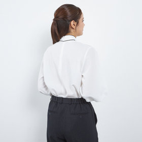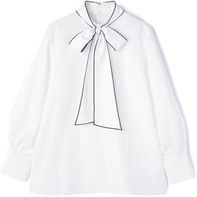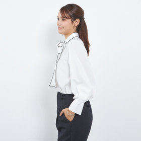 【WEB限定/OUTLET/汚れ・キズ等有】【SILVER LINE/長袖】ボウタイブラウス/ホワイト+ブラック