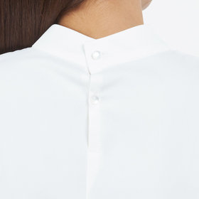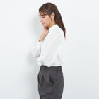 ギャザーを寄せたハイネックが上品な印象のプルオーバー。