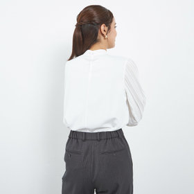 袖部分はジョーゼット素材のプリーツでふんわりとしたボリューム感を演出し、
