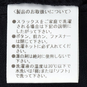 スーツやパンツのサイズ確認は、直立姿勢だけではなく、椅子に座った時の負荷。しゃがんだ時の負荷を考えたサイズ選びを必ずお願いします。ヒップ・太もも部分の生地にゆとりがない場合等の無理なサイズ選びは、体型や動きに関係なく生地や糸に負荷がかかり、「縫い目のほつれ」「生地の破れ」が起こります。また、両太もも同士が当たる場合や生地にゆとりがない場合、股ズレで生地が破れる可能性がございます。実店舗での商品確認・試着にて正しいサイズの購入をお勧めいたします。サイズが合わない事による「縫い目のほつれ」「生地の破れ」は「返品」「交換」「無償修理」はいたしかねます。また商品状態により修理が出来ない場合もございます。