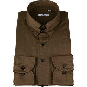 タブカラードレスシャツは、ノーネクタイやタイドアップなど幅広い着こなしを提案します。CLASSICO TAPEREDシャツは肩幅はシャツの肩が落ちないように狭く設定し肩を内側に入れ、袖山を高くし、肩のラインに沿うように、緩やかな曲線ヨ-クにしました。