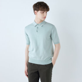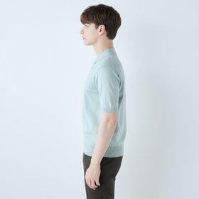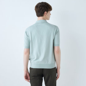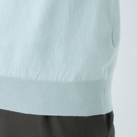 ・襟の編み方に工夫をし、綺麗なシルエットと保形性に優れる。