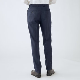 スーツやパンツのサイズ確認は、直立姿勢だけではなく、椅子に座った時の負荷。しゃがんだ時の負荷を考えたサイズ選びを必ずお願いします。ヒップ・太もも部分の生地にゆとりがない場合等の無理なサイズ選びは、体型や動きに関係なく生地や糸に負荷がかかり、「縫い目のほつれ」「生地の破れ」が起こります。また、両太もも同士が当たる場合や生地にゆとりがない場合、股ズレで生地が破れる可能性がございます。実店舗での商品確認・試着にて正しいサイズの購入をお勧めいたします。サイズが合わない事による「縫い目のほつれ」「生地の破れ」は「返品」「交換」「無償修理」はいたしかねます。また商品状態により修理が出来ない場合もございます。