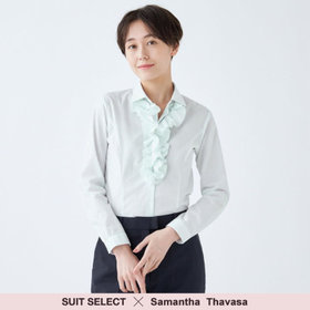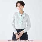 ☆フリル・・・首元から胸元にかけてギャザー分量を調整し、ボリューム感が出すぎず、ジャケットへの収まりが絶妙!