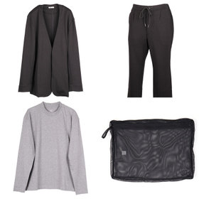 素材は4者混のシワになりにくいストレッチ素材でシーズンレス。■ジャケットは釦レスのサイドシームポケットのノーカラージャケットで袖口スリット仕様・内ポケット付き。■パンツはゆるやかなテーパードシルエットで2WAYドローコード付き・ベルトループ無・ファスナーポケット仕様。■Tシャツは首元がやや詰まったジャケットインロングTシャツ。■ウォッシャブルネットは佐藤可士和氏デザイン。ファスナー位置を高くし、出し入れが容易に。マチをつけ立体的にする事で衣服の圧迫を軽減。