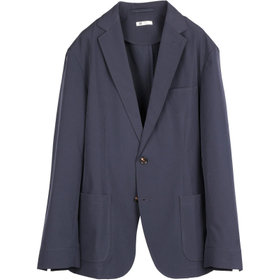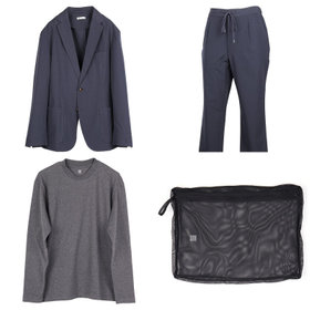素材は4者混のシワになりにくいストレッチ素材でシーズンレス。■ジャケットは釦レスのサイドシームポケットのノーカラージャケットで袖口スリット仕様・内ポケット付き。■パンツはゆるやかなテーパードシルエットで2WAYドローコード付き・ベルトループ無・ファスナーポケット仕様。■Tシャツは首元がやや詰まったジャケットインロングTシャツ。■ウォッシャブルネットは佐藤可士和氏デザイン。ファスナー位置を高くし、出し入れが容易に。マチをつけ立体的にする事で衣服の圧迫を軽減。