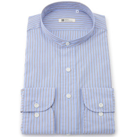バンドカラーシャツの最大の特徴は、襟がないため首元がスッキリと見えることです。