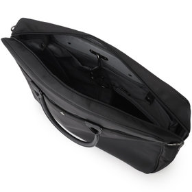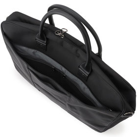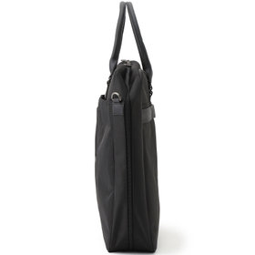 上品なブラックカラーで、ビジネスや出張にも最適。ショルダーストラップ付きで、手持ち・肩掛けの2WAY仕様。