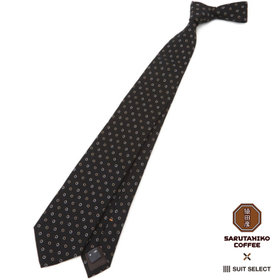 「SUIT SELECT×猿田彦珈琲」コラボ商品のネクタイ、蝶ネクタイ、ポケットチーフは、コーヒー豆を抽出した後の出がらしを製品の染料として再利用しています。本来は破棄されてしまう抽出後のコーヒー豆を「猿田彦珈琲」より譲り受けて再利用するサステナブルな取り組みです。ドリップコーヒーをイメージした味わいのあるブラウンに染まった各アイテムは、肌寒くなる季節にウォーム感と安らぎを与えてくれます。