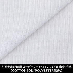 【国内縫製】【パターンオーダー】【形態安定】ワイシャツ・ドレスシャツ/ホワイト×ドビーストライプ/(日清紡スーパーノーアイロン、COOL)接触冷感(COTTON50%/POLYESTER50%)