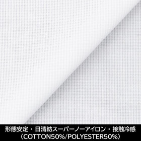 【国内縫製】【パターンオーダー】【形態安定】ワイシャツ・ドレスシャツ/ホワイト×ドビー/日清紡スーパーノーアイロン/接触冷感(COTTON50%/POLYESTER50%)