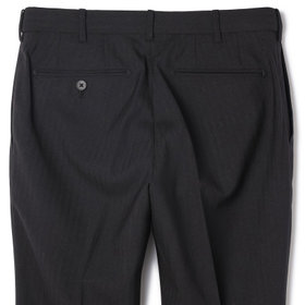 スーツやパンツのサイズ確認は、直立姿勢だけではなく、椅子に座った時の負荷。しゃがんだ時の負荷を考えたサイズ選びを必ずお願いします。ヒップ・太もも部分の生地にゆとりがない場合等の無理なサイズ選びは、体型や動きに関係なく生地や糸に負荷がかかり、「縫い目のほつれ」「生地の破れ」が起こります。また、両太もも同士が当たる場合や生地にゆとりがない場合、股ズレで生地が破れる可能性がございます。実店舗での商品確認・試着にて正しいサイズの購入をお勧めいたします。サイズが合わない事による「縫い目のほつれ」「生地の破れ」は「返品」「交換」「無償修理」はいたしかねます。また商品状態により修理が出来ない場合もございます。