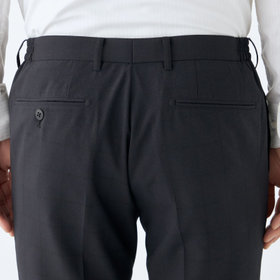 スーツやパンツのサイズ確認は、直立姿勢だけではなく、椅子に座った時の負荷。しゃがんだ時の負荷を考えたサイズ選びを必ずお願いします。ヒップ・太もも部分の生地にゆとりがない場合等の無理なサイズ選びは、体型や動きに関係なく生地や糸に負荷がかかり、「縫い目のほつれ」「生地の破れ」が起こります。また、両太もも同士が当たる場合や生地にゆとりがない場合、股ズレで生地が破れる可能性がございます。実店舗での商品確認・試着にて正しいサイズの購入をお勧めいたします。サイズが合わない事による「縫い目のほつれ」「生地の破れ」は「返品」「交換」「無償修理」はいたしかねます。また商品状態により修理が出来ない場合もございます。