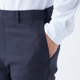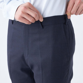 スーツやパンツのサイズ確認は、直立姿勢だけではなく、椅子に座った時の負荷。しゃがんだ時の負荷を考えたサイズ選びを必ずお願いします。ヒップ・太もも部分の生地にゆとりがない場合等の無理なサイズ選びは、体型や動きに関係なく生地や糸に負荷がかかり、「縫い目のほつれ」「生地の破れ」が起こります。また、両太もも同士が当たる場合や生地にゆとりがない場合、股ズレで生地が破れる可能性がございます。実店舗での商品確認・試着にて正しいサイズの購入をお勧めいたします。サイズが合わない事による「縫い目のほつれ」「生地の破れ」は「返品」「交換」「無償修理」はいたしかねます。また商品状態により修理が出来ない場合もございます。
