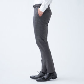 スーツやパンツのサイズ確認は、直立姿勢だけではなく、椅子に座った時の負荷。しゃがんだ時の負荷を考えたサイズ選びを必ずお願いします。ヒップ・太もも部分の生地にゆとりがない場合等の無理なサイズ選びは、体型や動きに関係なく生地や糸に負荷がかかり、「縫い目のほつれ」「生地の破れ」が起こります。また、両太もも同士が当たる場合や生地にゆとりがない場合、股ズレで生地が破れる可能性がございます。実店舗での商品確認・試着にて正しいサイズの購入をお勧めいたします。サイズが合わない事による「縫い目のほつれ」「生地の破れ」は「返品」「交換」「無償修理」はいたしかねます。また商品状態により修理が出来ない場合もございます。