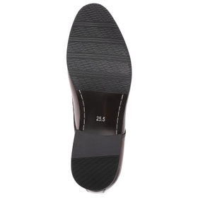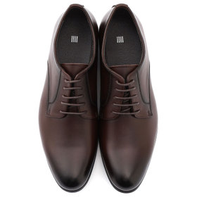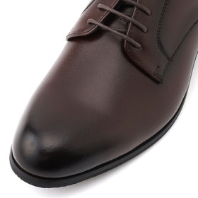 シンプルで洗練されたデザインが魅力の、ブラウンのプレントゥドレスシューズです。