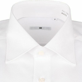 ダブルカフス(ゴムカフス付)のワイドドレスシャツはビジネスからジャケットスタイルまで幅広い着こなしを提案します。【SILVER LINE】シャツは過剰な部分は排除し、機能を突き詰めたシンプルで快適なエレガントなシルエット。アームホールを細くすることにより、袖回りの余分なたるみをそぎ取り、美しいシルエットと動きやすさを併せたスリムアームを採用。立体的デザインで体になじむ型にする為、前身頃に対し後身頃を大きく取り、脇縫い部分を前に出すことで、動きやすさと適度なフィット感を出し、だぶつかず綺麗なシルエットを採用しています。また素材にこだわった形態安定加工(ノーアイロン)で、ご家庭でのお手入れも簡単になりました。
