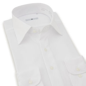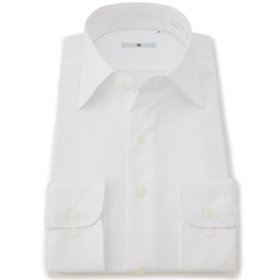 ホワイト×ブロード(無地)のワイドカラードレスシャツは上着やネクタイを選ばず幅広い着こなしを提案します。ブロードとは経糸と緯糸に同じ太さの糸を使用して、経糸を緯糸の倍くらいの密度に織った平織りのもので、表面に滑らかな光沢があり、高番手になるほど光沢が増します。【SILVER LINE】シャツは過剰な部分は排除し、機能を突き詰めたシンプルで快適なエレガントなシルエット。アームホールを細くすることにより、袖回りの余分なたるみをそぎ取り、美しいシルエットと動きやすさを併せたスリムアームを採用。立体的デザインで体になじむ型にする為、前身頃に対し後身頃を大きく取り、脇縫い部分を前に出すことで、動きやすさと適度なフィット感を出し、だぶつかず綺麗なシルエットを採用しています。また素材にこだわった形態安定加工(ノーアイロン)で、ご家庭でのお手入れも簡単になりました。
