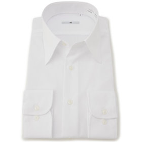 ホワイト×ブロード(無地)のレギュラーカラードレスシャツは上着やネクタイを選ばず幅広い着こなしを提案します。ブロードとは経糸と緯糸に同じ太さの糸を使用して、経糸を緯糸の倍くらいの密度に織った平織りのもので、表面に滑らかな光沢があり、高番手になるほど光沢が増します。【SILVER LINE】シャツは過剰な部分は排除し、機能を突き詰めたシンプルで快適なエレガントなシルエット。アームホールを細くすることにより、袖回りの余分なたるみをそぎ取り、美しいシルエットと動きやすさを併せたスリムアームを採用。立体的デザインで体になじむ型にする為、前身頃に対し後身頃を大きく取り、脇縫い部分を前に出すことで、動きやすさと適度なフィット感を出し、だぶつかず綺麗なシルエットを採用しています。また素材にこだわった形態安定加工(ノーアイロン)で、ご家庭でのお手入れも簡単になりました。