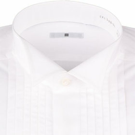 ウイングカラードレスシャツはクラシックにドレスアップするゴムカフス付のダブルカフス仕様でパーティーシーンにもお勧めです。【SILVER LINE】シャツは過剰な部分は排除し、機能を突き詰めたシンプルで快適なエレガントなシルエット。アームホールを細くすることにより、袖回りの余分なたるみをそぎ取り、美しいシルエットと動きやすさを併せたスリムアームを採用。立体的デザインで体になじむ型にする為、前身頃に対し後身頃を大きく取り、脇縫い部分を前に出すことで、動きやすさと適度なフィット感を出し、だぶつかず綺麗なシルエットを採用しています。