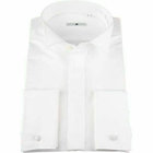 ホワイト×ブロードのウイングカラードレスシャツ。クラシックにドレスアップするゴムカフス付のダブルカフス仕様でパーティーシーンにもお勧めです。SL-4シャツは過剰な部分は排除し、機能を突き詰めたシンプルで快適なエレガントなシルエット。シャツ生地の糸は2本の糸を撚り合わせて1本の糸とした80番手双糸を使い、一般的な生地にくらべ肌触りが大変良く仕上がっています。