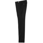 (5)膝から裾口にかけて細くなるテーパードパンツ。