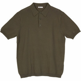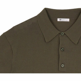 春はジャケットのインナーとして、夏は1枚でもこなれた印象で決まるレトロポロ。襟がやや大きめでリッチな艶を放つハイゲージニット素材。透け感を隠すダークカラーで展開