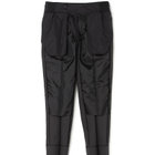(5)膝から裾口にかけて細くなるテーパードパンツ。