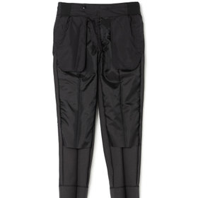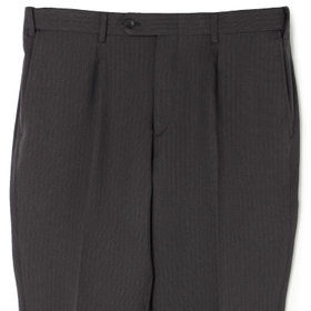 スーツやパンツのサイズ確認は、直立姿勢だけではなく、椅子に座った時の負荷。しゃがんだ時の負荷を考えたサイズ選びを必ずお願いします。ヒップ・太もも部分の生地にゆとりがない場合等の無理なサイズ選びは、体型や動きに関係なく生地や糸に負荷がかかり、「縫い目のほつれ」「生地の破れ」が起こります。また、両太もも同士が当たる場合や生地にゆとりがない場合、股ズレで生地が破れる可能性がございます。実店舗での商品確認・試着にて正しいサイズの購入をお勧めいたします。サイズが合わない事による「縫い目のほつれ」「生地の破れ」は「返品」「交換」「無償修理」はいたしかねます。また商品状態により修理が出来ない場合もございます。