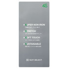多様化するワーキングスタイルに合わせてファンクショナル。イージーケアな着心地ときちんとしたルックスを両立させたビジネスウェアです。SUPER NON IRON、STRETCH、SOFT TOUCH、SLIMの4つの特徴の頭文字を取り『4Sスーツ』と命名しました。