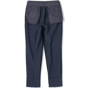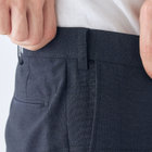 (5)膝から裾口にかけて細くなるテーパードパンツ。