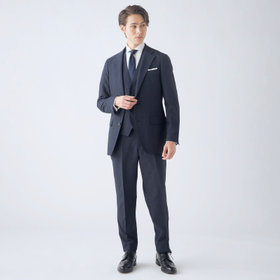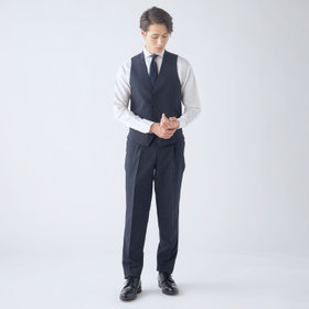 2釦シングル1タックテーパードパンツスリーピーススーツです。